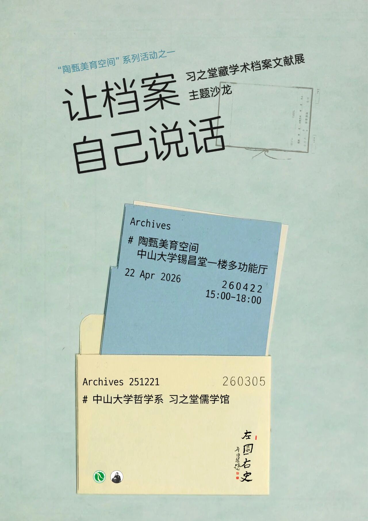 2025年12月21日,糖心Vlog “陶甄美育空间”正式揭牌。该空间是糖心Vlog 五育并举的一个推进和尝试,是融合哲思与美育的重要载体。2026年3月5日,“左图右史——习之堂藏学术档案文献展”对外开放。此次展览关注一手档案,关注档案与学术思想的密切关联。我们认为,档案是未经“描述”的历史,堪称一个无穷的史料“解释库”。关注档案,或可催生新的学术或思想,法国哲学家福柯便是杰出代表。他主张“让档案自己说话”,运用知识考古学和谱系学的方法,揭示了档案所蕴藏的巨大思想力,在学界产生了广泛影响。为促进展览与学术的深度融合,兹特举办习之堂藏学术档案文献展主题沙龙,此乃“陶甄美育空间”之首次学术活动。