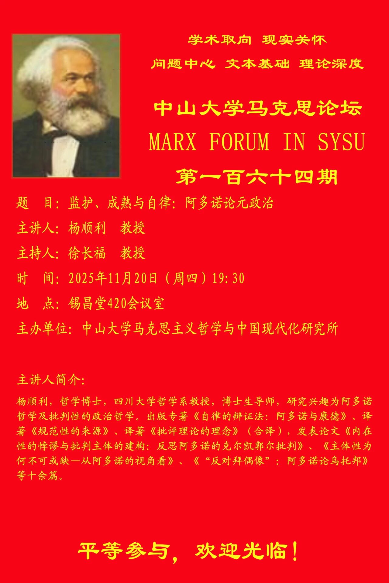 中山大学马克思论坛第164期预告 | 杨顺利:监护、成熟与自律:阿多诺论元政治