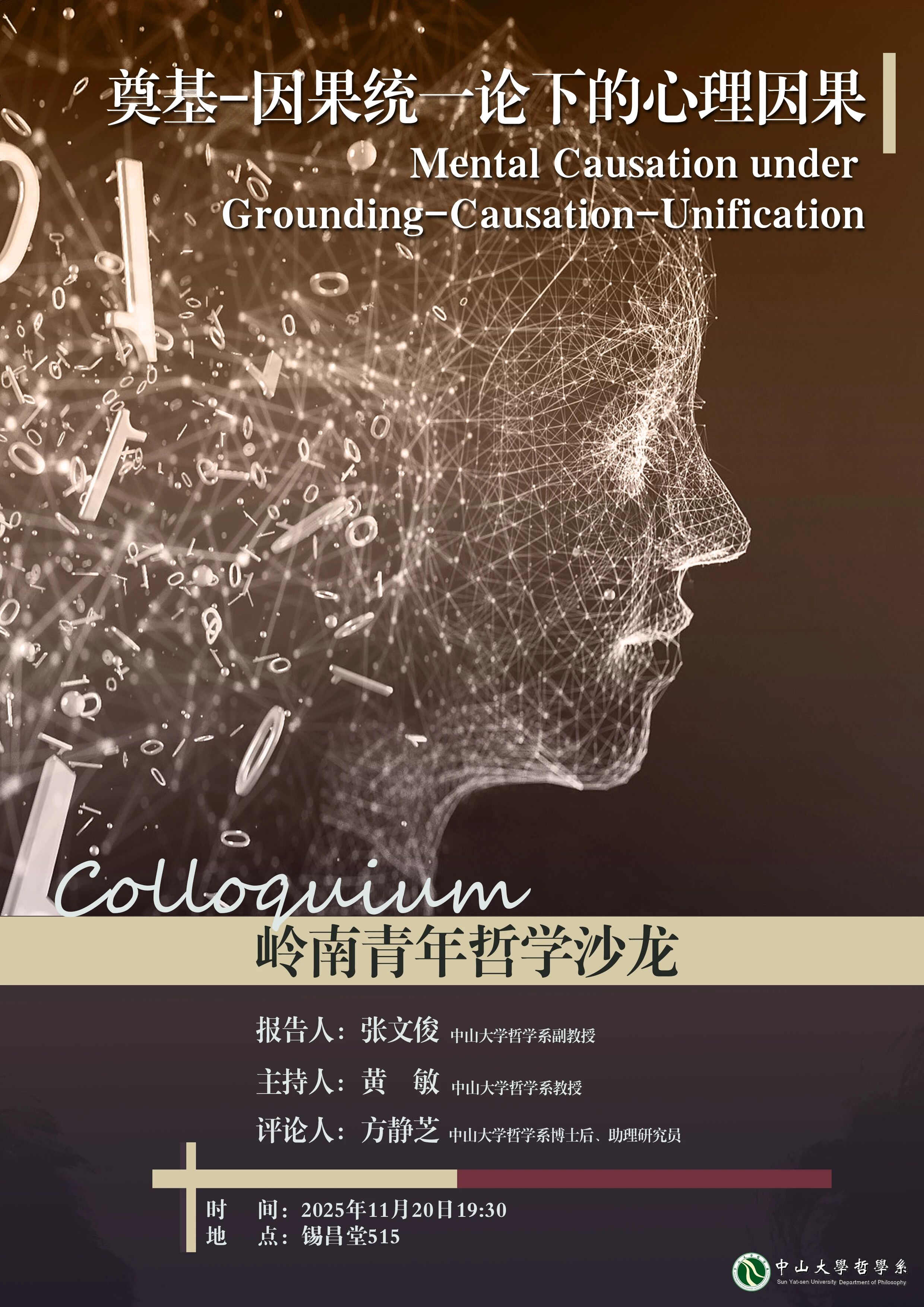 岭南青年哲学沙龙预告 | 张文俊:奠基-因果统一论下的心理因果