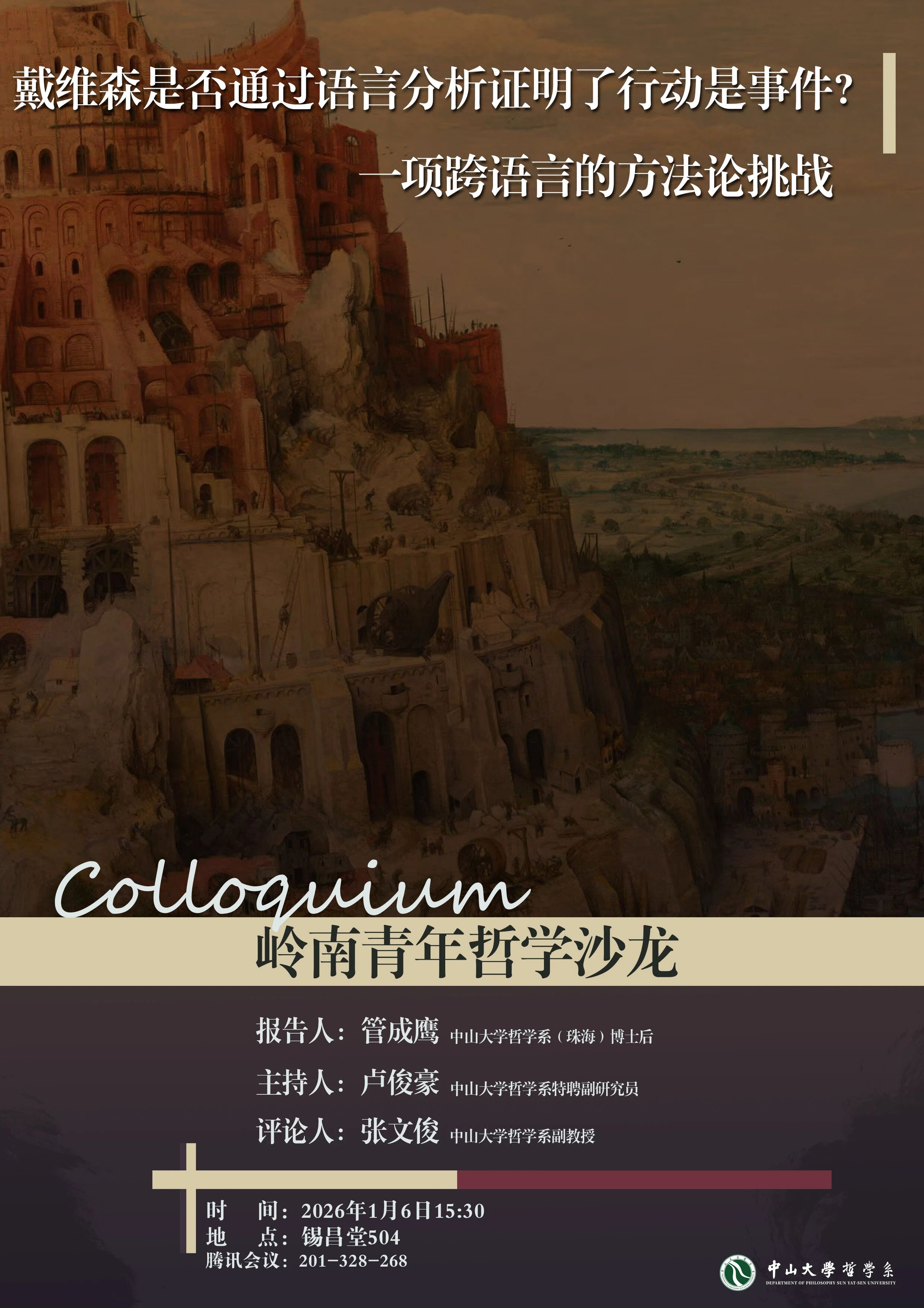 岭南青年哲学沙龙预告 | 管成鹰:戴维森是否通过语言分析证明了行动是事件?——一项跨语言的方法论挑战